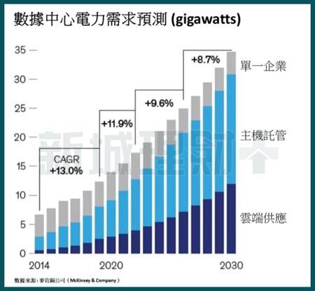 從上圖可以看到,科技公司以至國家持續向人工智能投入算力資源的同時,公用事業亦因而需要投放更多資源在電力設施上,以確保電力供應能符合未來的需求。報道指出,單單在芝加哥地區,因新增數據中心的計劃而產生的未來電力需求,將會是過去的九倍,需要增建四台核電機組來應付 !