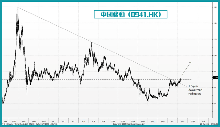 其實恒生指數從2021年開始到現在,暫時累積約40%跌幅。相反,不計以派出的股息,中移動H股價在同時間累積72%升幅。換言之,中國電信板塊仍然是有增長的高息股。