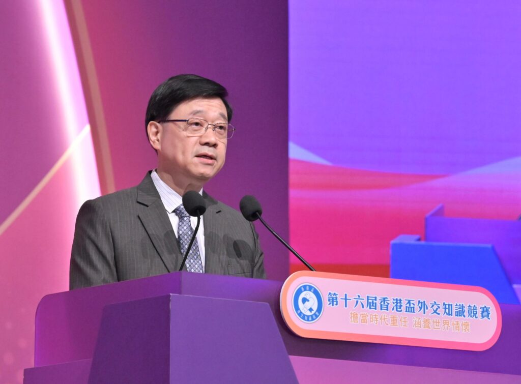 香港特區行政長官李家超致辭表示,中國特色大國外交始終維護國家主權、安全、發展利益,為推動構建人類命運共同體發揮重要影響力,彰顯大國之風。希望每一位香港青少年都能深入了解國家國情、歷史、文化,深刻認識世界和國家發展大勢,錘鍊過硬本領,在變局中激發創新創造活力,為國家和香港的發展作出貢獻。