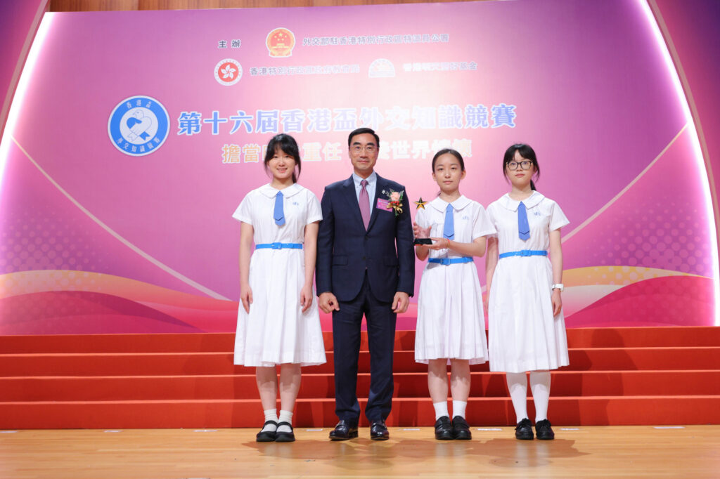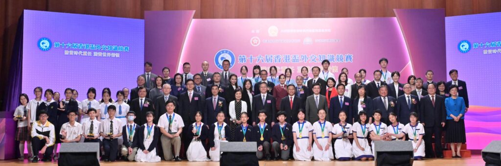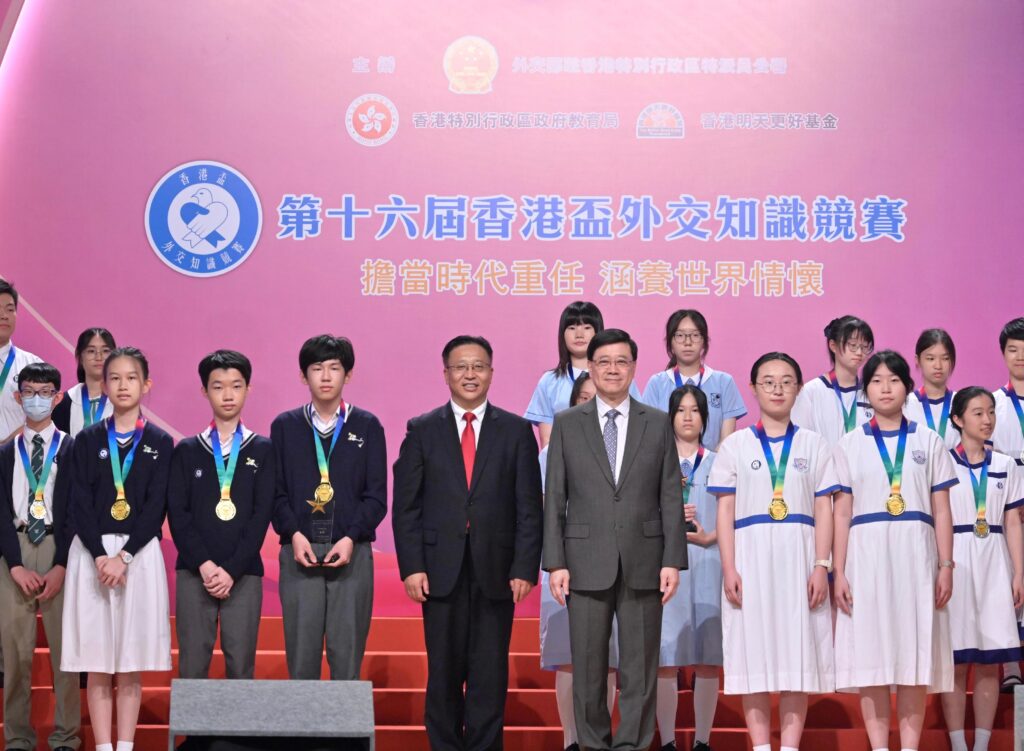 第十六屆香港杯外交知識競賽決賽暨頒獎典禮5月18日在港舉辦。今年競賽以「擔當時代重任,涵養世界情懷」為主題,吸引了全港263所中小學近7萬人報名參賽。