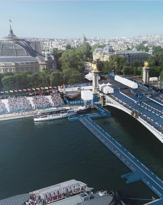 巴黎最美麗的橋之一 — 亞歷山大三世橋,有着濃厚的藝術氣息。 2024巴黎奧運會將在這裡舉行三項鐵人,單車與長跑比賽會在橋上進行,游泳比賽則在塞納河進行。