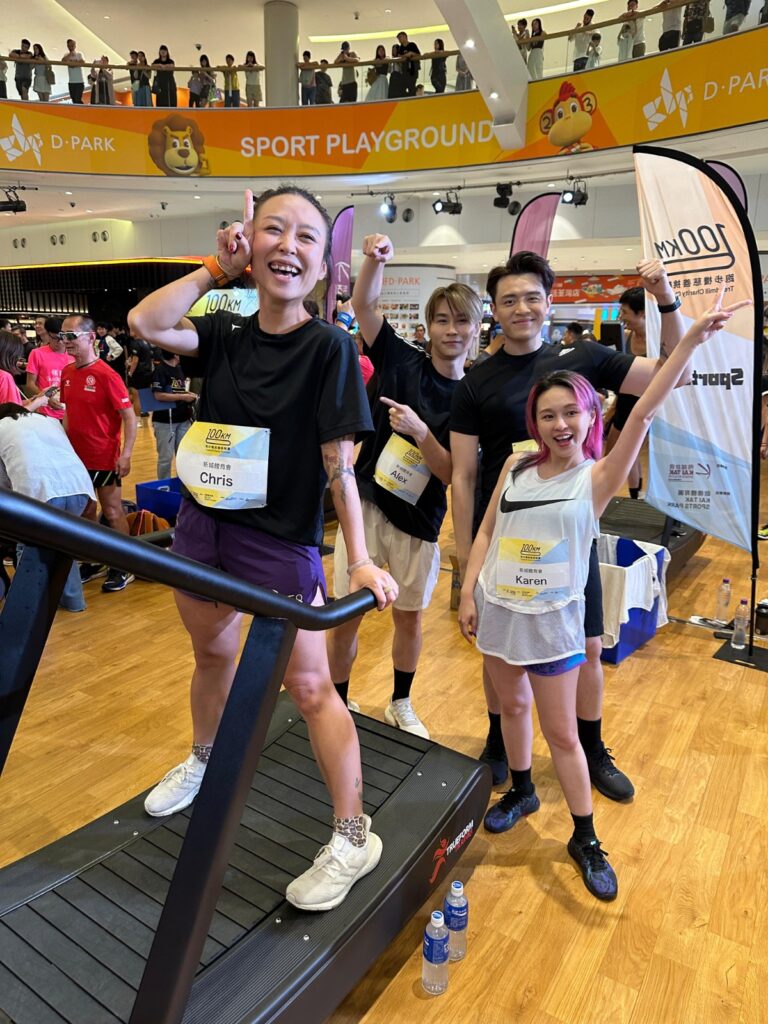 新城廣播主持人黎莉、歌手安俊豪、鄺星宇及龔柯允代表《新城體育會》,4人分別在非電動跑步機上,以接力形式合力累積10公里。總經理(項目及商業事務)朱靜宜和項目總監葉碧梅特別到場為他們打氣。比賽過程中,由於非電動跑步機是依個人運動的速度,進行相對的移動,他們先後輪流跑,起初都比較難去控制速度,後來就越跑越順。