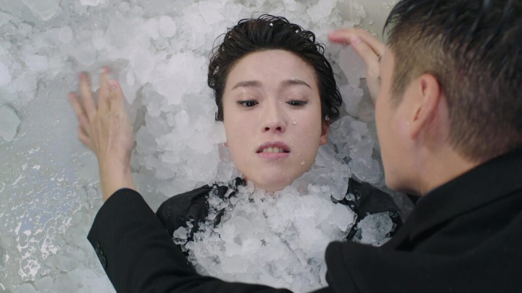 家燕姐問Elaine有沒有包保鮮紙來保體溫?Elaine回憶當時已經全身濕透,劇情安排用冰讓她所飾演的角色減少不適,所以倒冰的時候,寒意是慢慢由外面滲入體內:「劇組好似有準備保鮮紙,已忘了有冇用到,好似冇用。第一、二桶(冰)還可以頂得住,但到第三桶開始有生理反應(發冷),但想真實就要凍到冇感覺。」