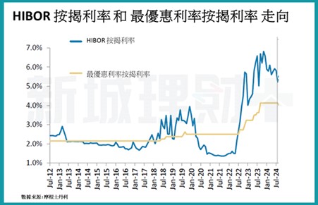 根據分析師的報告,他們預期今年美國聯邦基金利率有機會在年底前下降0.75%,而在明年中,更有望再下調另外100個基點,使得今次的減息周期可以有1.75%的調整幅度。如果這預測較準確的話,香港的HIBOR利率有機會在明年中回到2022年間的水平——約為2.75%,屆時HIBOR 的按揭利率就約為4.0%,跟3.2%總租金回報率的差距就因而可以收窄,有助減慢現時房地產價格的跌勢,甚至有預測,有機會出現5%的升幅。