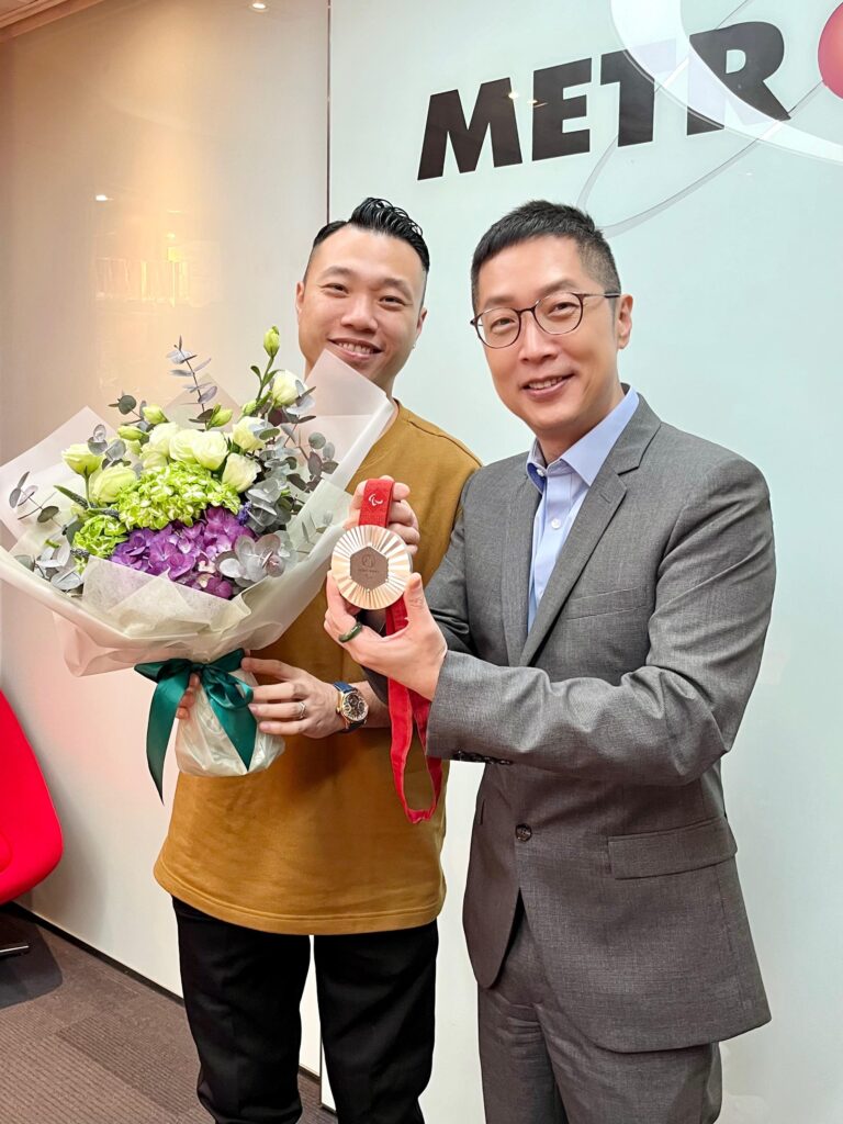 39歲「輪椅羽毛球一哥」陳浩源巴黎殘奧完成其球員生涯最後一場比賽,負傷勇奪銀牌,比賽後「掛拍」。 陳浩源今天(25日)到新城廣播接受訪問,首席營運總監馬浚偉親自獻花及蛋糕,與一眾新城DJ恭賀陳浩源取得佳績。