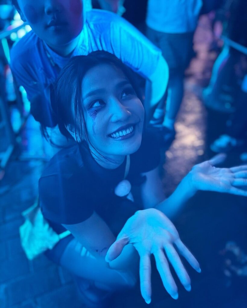 林芊妤(Coffee)扮浴血中國娃娃,帶埋仔仔入海洋公園玩鬼屋,她在社交平台留言說:「彥彥最後為左(咗)要睇君君有幾驚而入左(咗)鬼屋,原來5歲開始就可以入去玩鬼屋啦。」