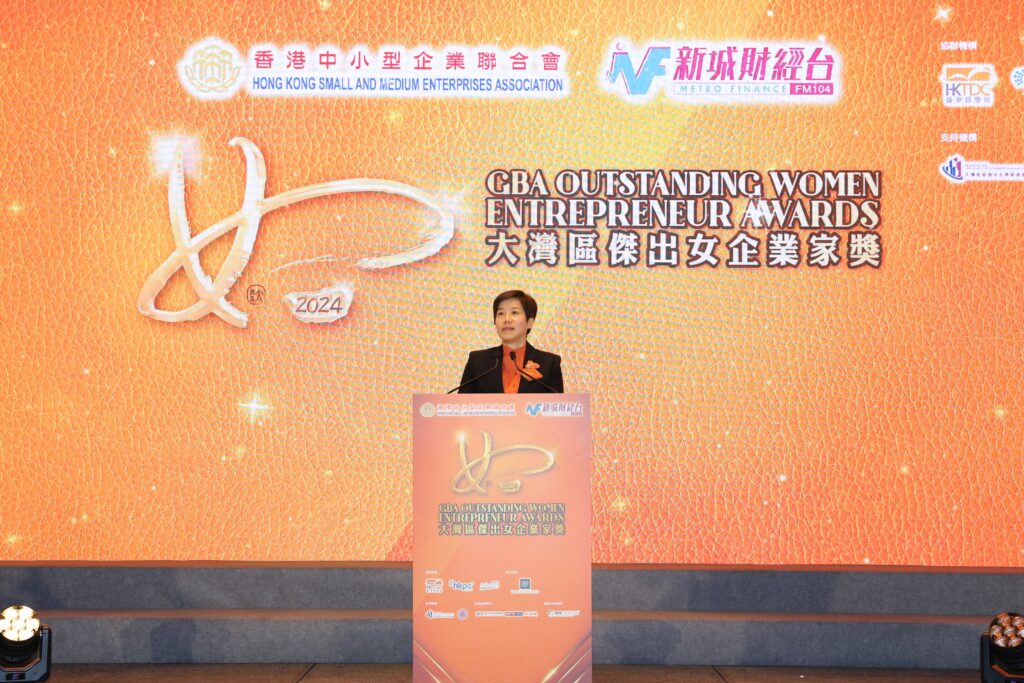 《大灣區傑出女企業家獎2024》頒獎禮邀得海關關長何珮珊女士, CDSM, CMSM擔任主禮嘉賓,並發表賀辭鼓勵一眾女性及企業家,繼續盡顯才華,發揮巾幗力量,貢獻社會。何珮珊關長表示根據聯合國資料顯示,今年女性在全球國會中的平均比例約為27%,並且持續增長,有私人機構對企業進行的調查顯示,全球女性高管的比例在過去20年間增加14%,達最新的33%;現時香港擔任主要官員的女性比例屬歷屆政府最高,以上種種均證明現今女性在各個範疇都獲更多機會參與領導工作引領行業的發展,以香港海關為例,女性在高級管理層中的比例達40%,各級女性人員均可以在執法工作中,如調查販毒、走私或侵權的行動中大展拳腳獨當一面。她亦認可女企家們以善拚敢贏的精神,在充滿挑戰的創業、首業、改革的路上勇敢前行,以創新的產品和貼身的服務滿足市場,提升大眾的生活質素,為區域發展注入動能。