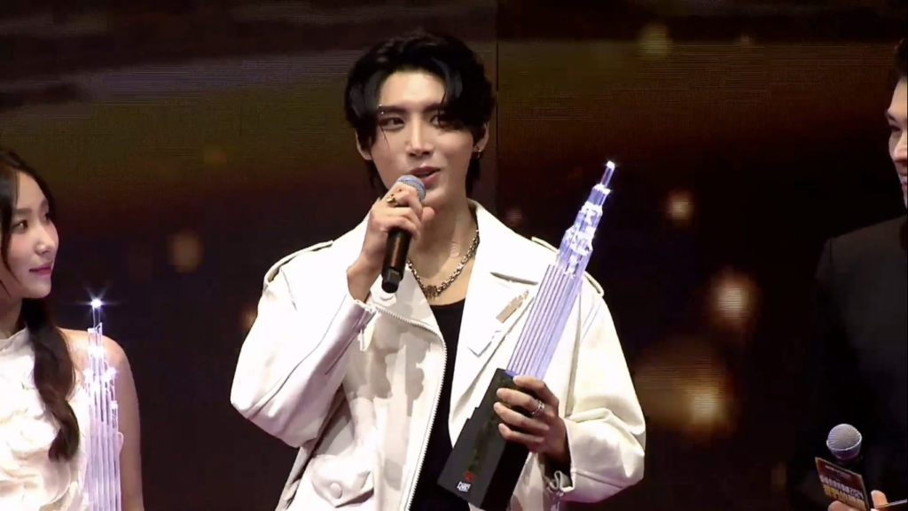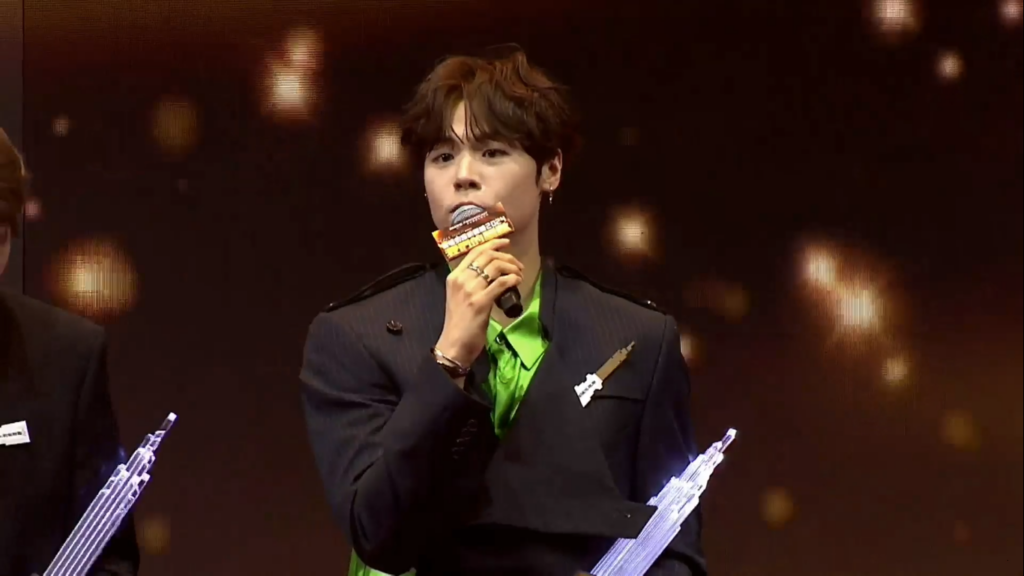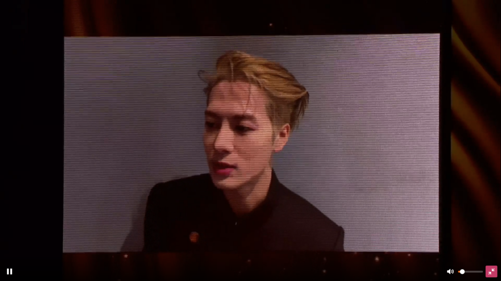 王嘉爾(Jackson)憑《Feeling Lucky》奪得「勁爆播放指數歌曲」,他雖然未能親身到場領獎,但特意拍片講得獎感受,他說:「我好鍾意新城,我好感恩和榮幸得到這個獎項,好多謝台前幕後工作人員,新城I love you!」