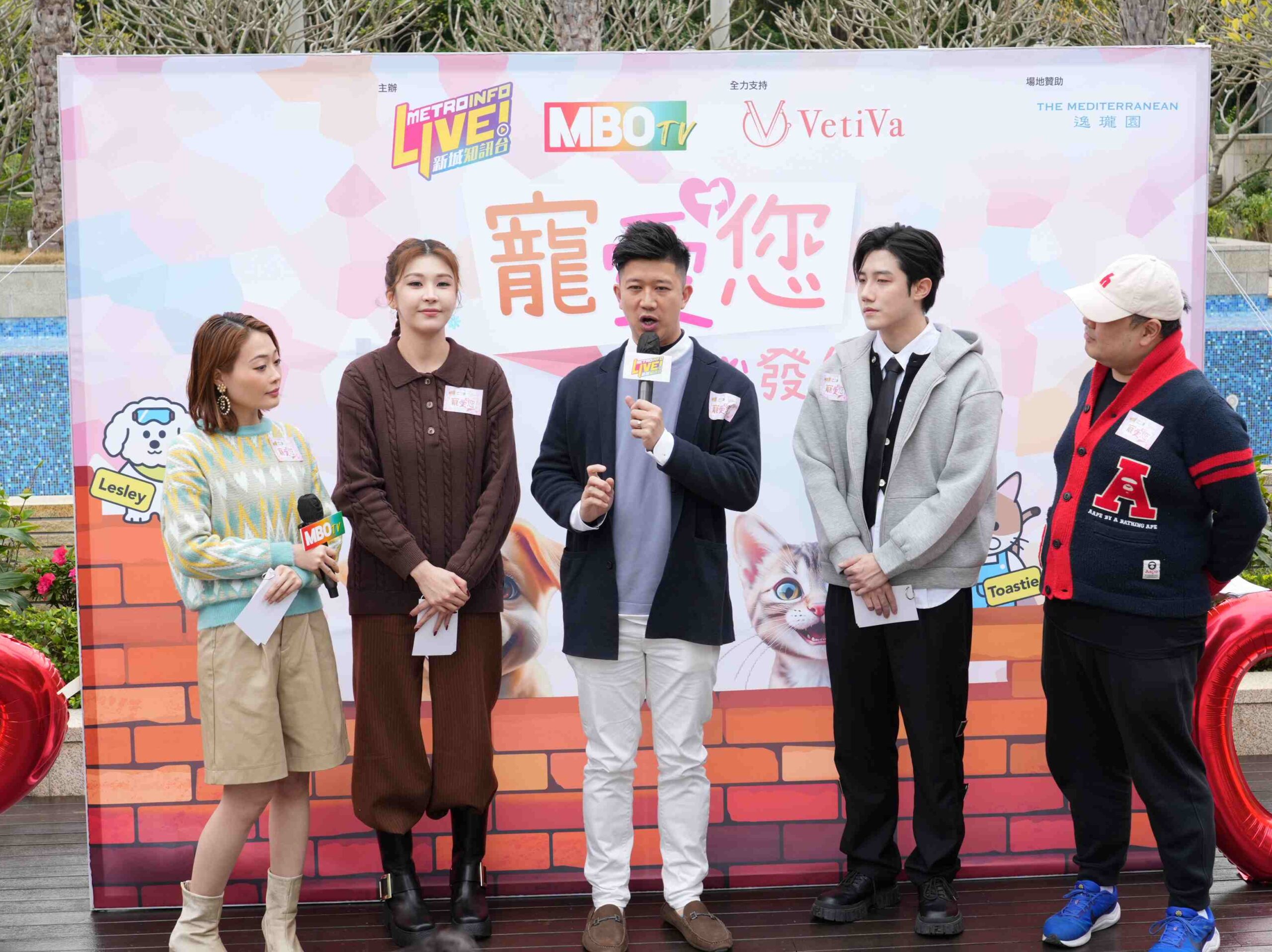 新城知訊台台長程凱欣與新城網上平台MBO TV台長葉文輝(啤梨),是日聯同節目主持「長腿女神」施匡翹(Zaina)、新晉歌手華浩然(Wolris)、新城主持麥卓華(小麥)及羅沛琪(Pinky)總動員現身,預告即將在3月2日首播的《寵愛您》更多不能錯過的內容。是日《寵愛您》愛心發布會,獲邀出席的嘉賓與節目主持大都攜同毛孩出席,狗狗聚首一堂,場面熱鬧又溫馨。