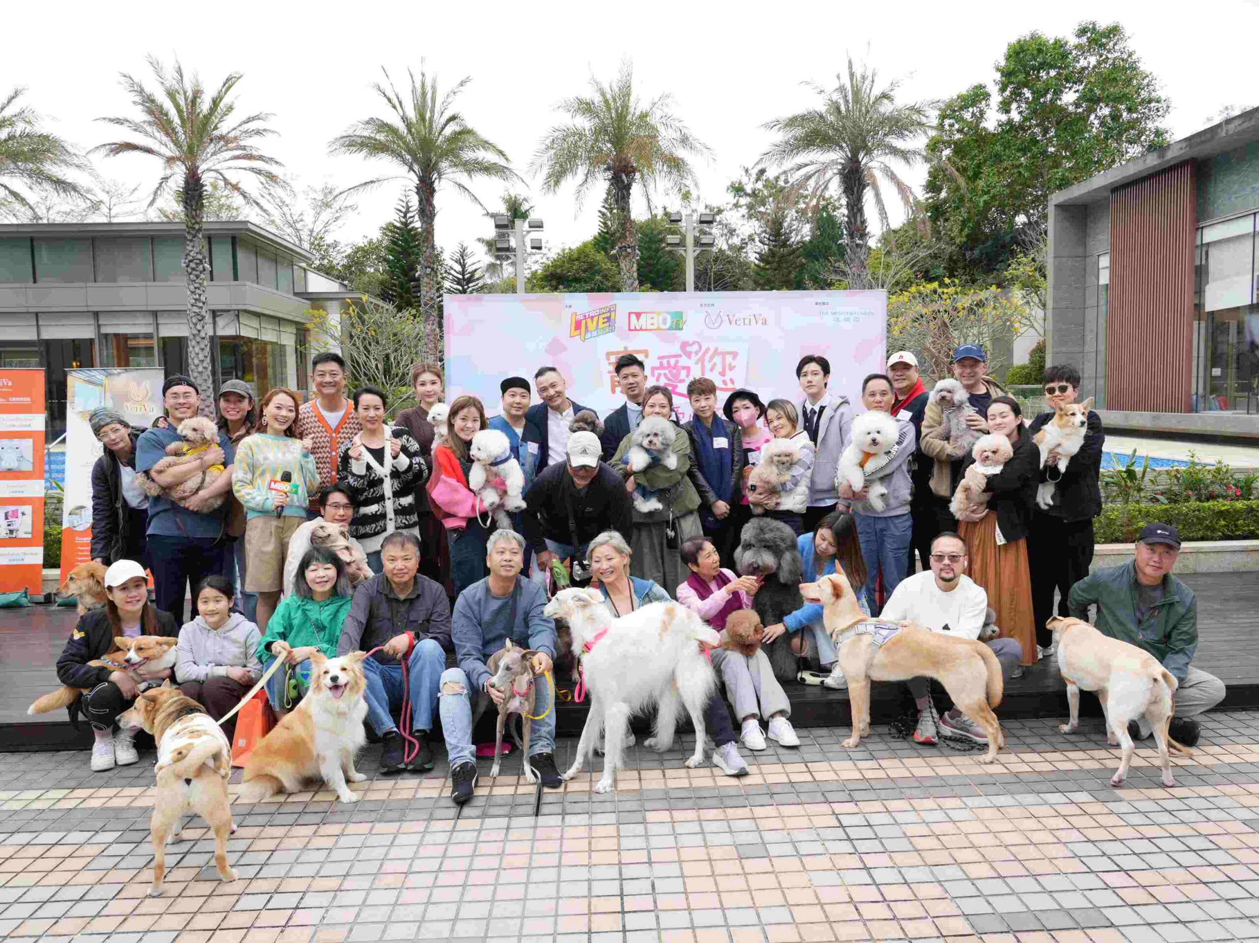 發布會來到尾聲,新城廣播項目及商業事務總經理Jeannie Chu、新城知訊台台長程凱欣、新城網上平台MBO TV台長葉文輝、VetiVa Center for Animal Wellness動物醫院營運總監Vincent、超級馴犬師Eric Ko與四位《寵愛您》節目主持手持心心氣球在台上大合照,《寵愛您》愛心發布會圓滿舉行。
