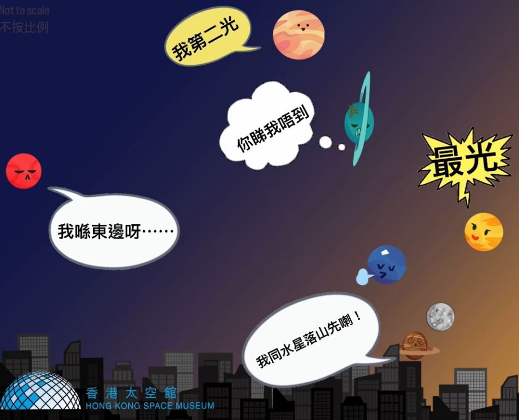 太空館建議,想觀賞行星,日落後可望向西邊天空會見到金星,天頂附近有橙黃色的木星,東邊還有紅色的火星,雖然未能一次看到七粒行星串連,但這三粒行星「已經好光、好靚」。