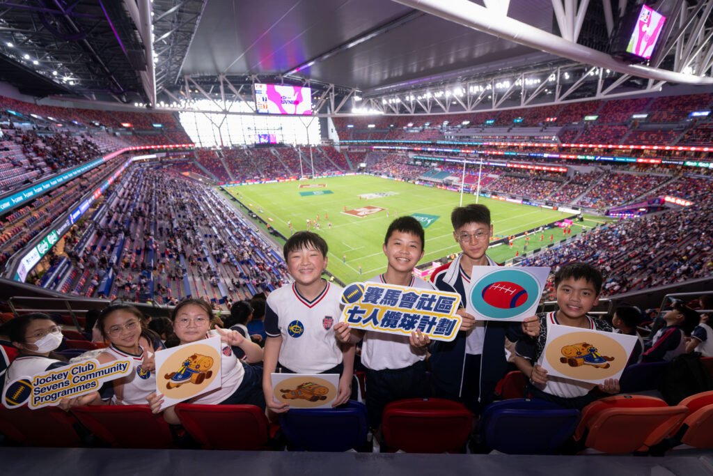 一連三日的「七欖」賽事於啟德體育園舉行,除了上演多場精彩刺激的比賽,「賽馬會社區七人欖球計劃」更為賽事添上色彩。「賽馬會小型欖球表演賽」讓本地欖球小將在啟德體育園主場館對壘,親身參與體壇盛事,大顯身手。同時,「賽馬會七人欖球賽學校導賞團」和「賽馬會社區七人欖球賽體驗日」讓學生和基層市民,包括長者和殘疾人士等,入場感受世界級「七欖」賽事。馬