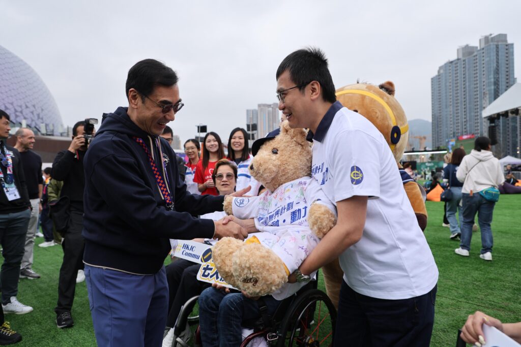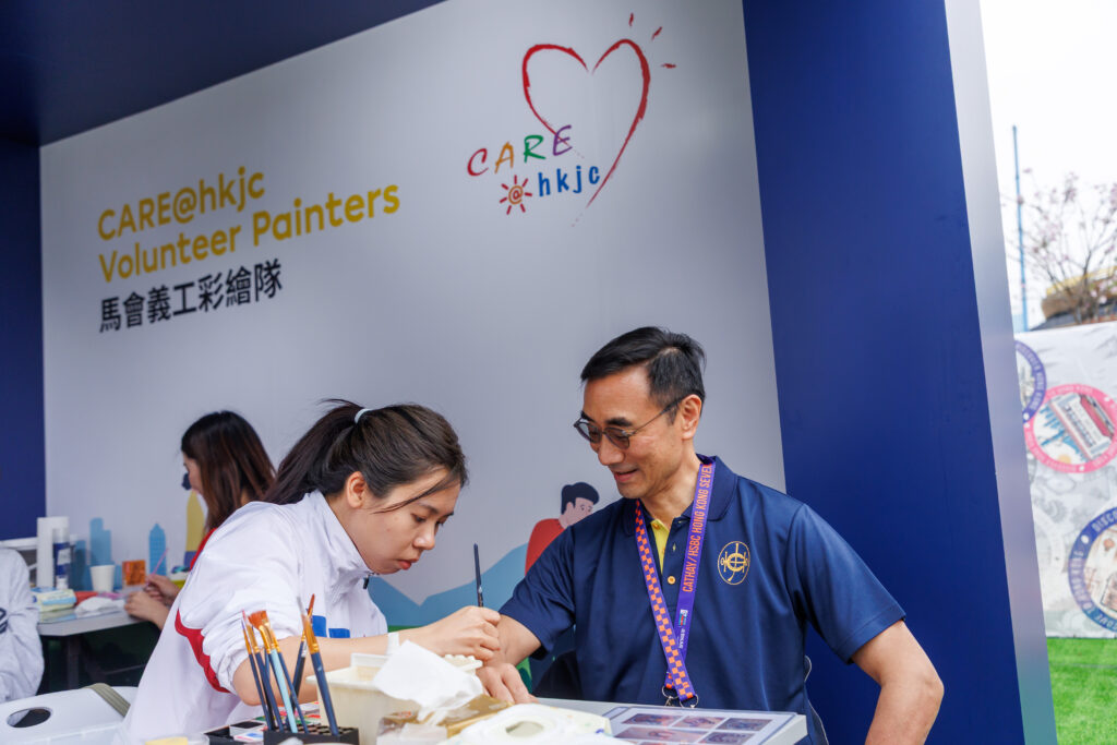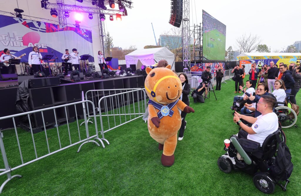 會義工隊 CARE@hkjc成員亦陪同輪椅人士一起現場體驗賽事,為入場人士提供面部彩繪服務。由馬會義工隊組成的「CARE 樂隊」更在「七欖」球迷村舞台上演出,增添現場氣氛。