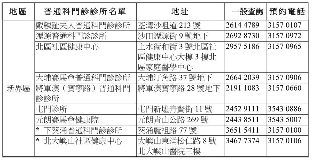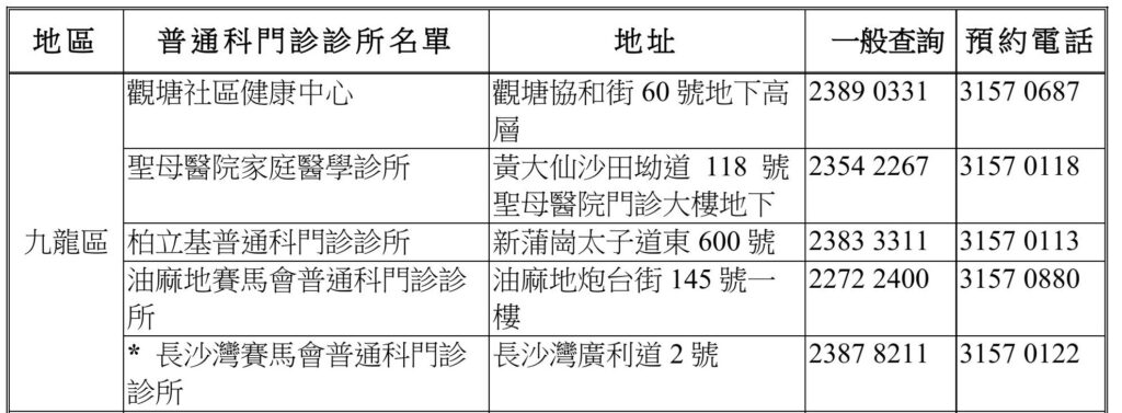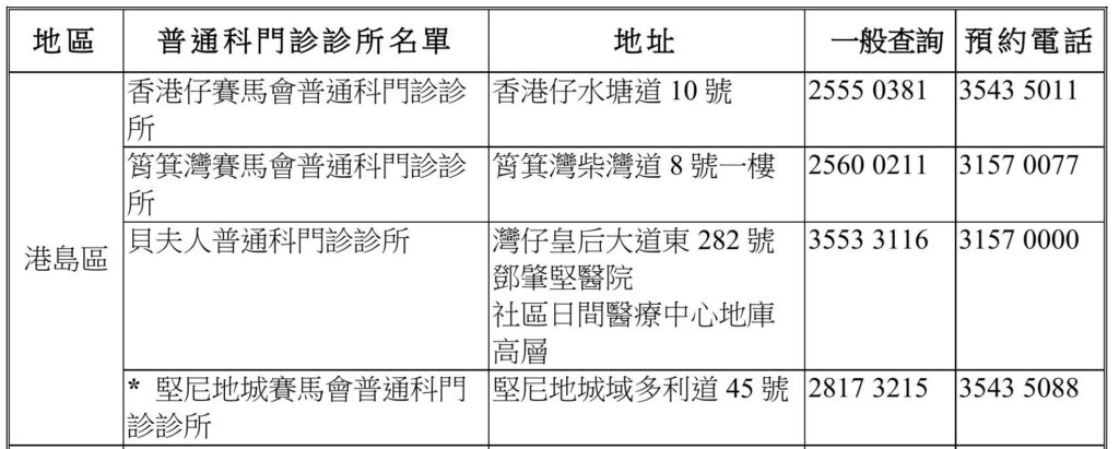 以下18間普通科門診診所提供公眾假期普通科門診服務。