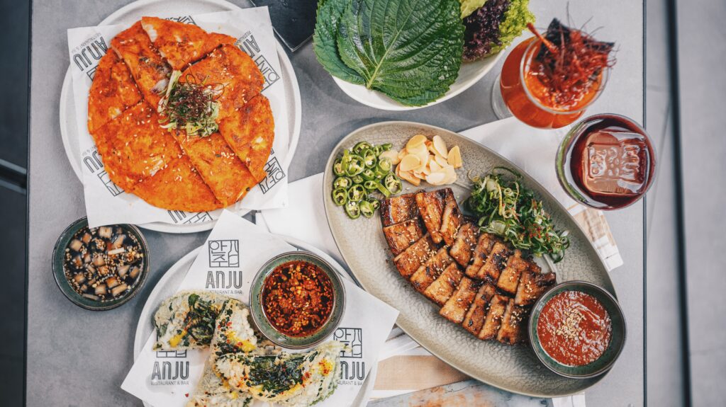 融合韓國當代佐酒(anju)文化精髓及新派西式烹調風格的ANJU Modern Korean顛覆傳統韓食美學,打造出獨特的味覺饗宴。精選招牌菜式有醬烤五花肉,豐富的層次令人回味無窮;另有外皮金黃酥脆的泡菜煎餅及創意小吃炸紫蘇葉豬肉餃子。佐以特調的兩款全新韓式雞尾酒,點亮整個用餐體驗,演繹摩登首爾酒食文化。