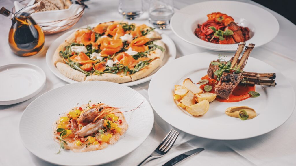 意式餐廳JOIA讓每道佳餚都散發出地道意大利風情。前菜以清新開胃的西西里紅蝦刺身薄片為主角,讓人胃口大開。值得一試的主菜包括慢煮波士頓龍蝦紅菜頭寬麵,以細滑的意粉搭配鮮甜的龍蝦及紅菜頭,層次豐富又創意十足。煙三文魚薄餅則選用香滑三文魚配以濃郁白醬,搭配薄脆餅底,完美平衡每一口的美味。壓軸的草飼羊架搭配烤馬鈴薯,佐以芥末醬及紅椒醬,細膩的味道讓人回味無窮。