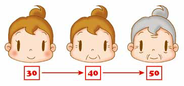 皮膚「醣化」和羰基化,令整體看起來偏暗,特別是眼睛周圍,臉頰等的部份,呈灰色,茶色,黃色等,皮膚看起來倦怠不健康。跟30歲前的皮膚帶有通透感之外還呈薄紅色的健康膚色比較,40歲的膚色有著截然不同的皮膚狀態。