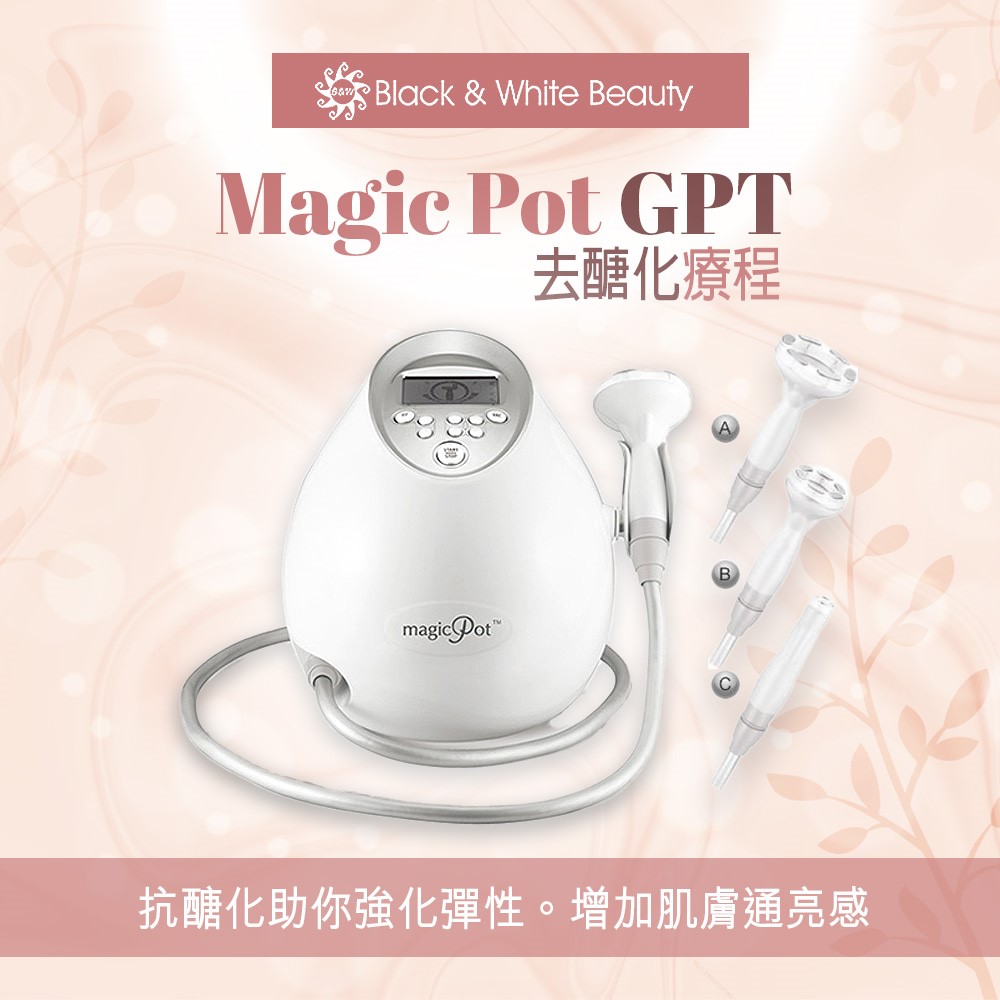 GPT 去醣化療程可以達到一方面改善已被「醣化」的暗黃皮膚,另一方面可防止醣化物堆積,增加皮膚密度,保持肌膚光澤細緻。