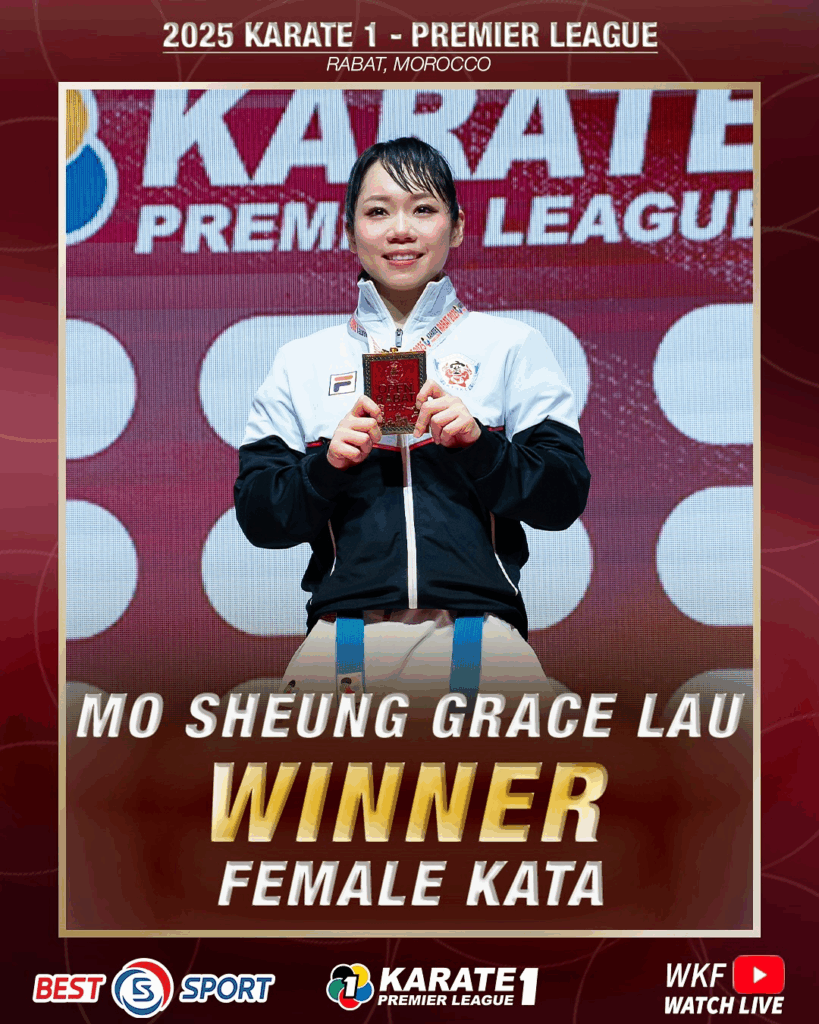 世界排名第一的香港空手道運動員劉慕裳(Grace)周日於摩洛哥拉巴特的K1超級聯賽最後一站女子個人形決賽,力壓日本勁敵尾野真步,摘下今季第三面K1超聯金牌。更首度獲得「年終總冠軍」殊榮,奪「金邊袍」!