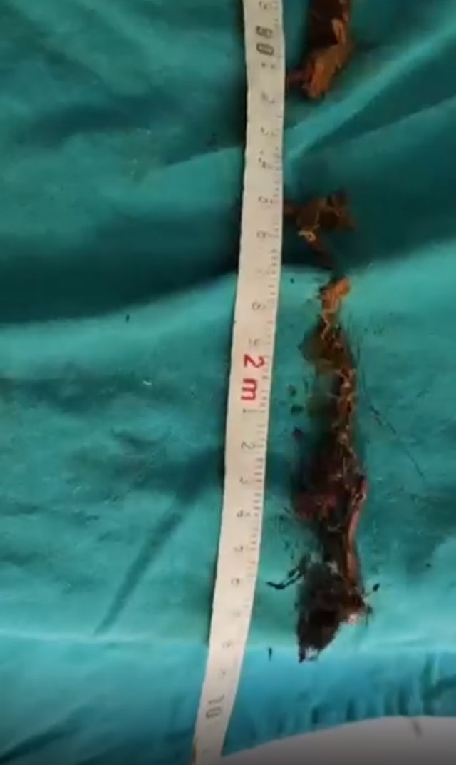 醫生指出此次手術難度極高,主要原因是毛髮結石已經延伸至小腸,若無法一次完整取出,恐需多次切開腸道。醫生強調,結石長度高達21CM,超越先前18CM的世界紀錄,兩個小時的手術過程未需輸血,展現醫療團隊高超技術。