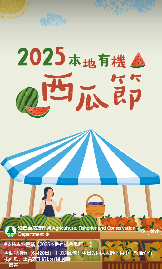 市民若想進一步了解更多「2025本地有機西瓜節」資訊,請瀏覽漁護署網頁(www.afcd.gov.hk)或Facebook專頁(www.facebook.com/afcdgovhk)。