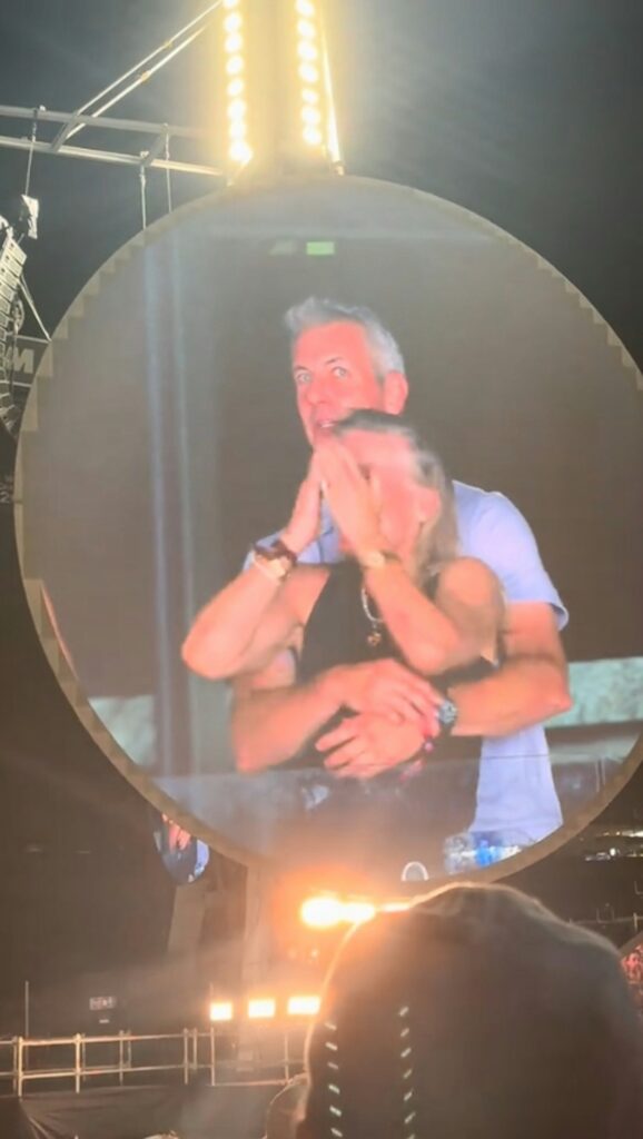 據網民上載片段,Coldplay演唱會中有一個環節,出現負責製造現場氣氛和娛樂性的「親吻鏡頭」(kiss cam)捕捉到台下1對親密互動的男女,當倆人發現自己上了大螢幕時,女方露出訝異神色並用手摀臉,男女雙方接著先後躲避鏡頭。Coldplay主唱Chris Martin在台上看到兩人Kiss Cam反應時笑稱:「他們要不是在偷情,就是太害羞了(Either they’re having an affair or they’re just very shy.) 」。