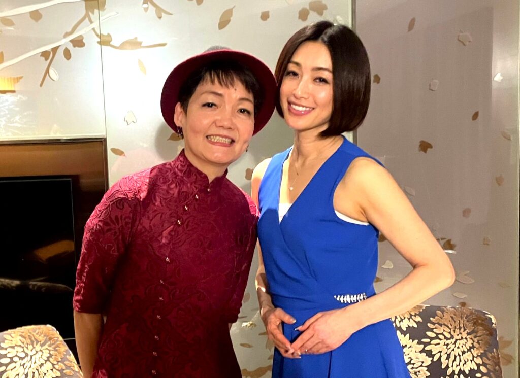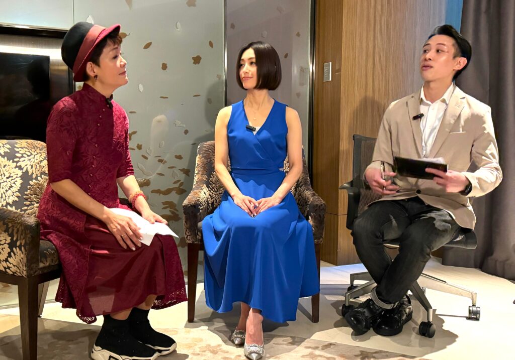 被譽為「怪物級美魔女」的酒井法子,身穿藍色長裙見Karen,不論身形、樣貌仍保持狀態。主持人Karen都忍不住向酒井偷師凍齡秘技。酒井反而大讚Karen保養得宜,還反過來請教台長養生之道,二人惺惺相惜,訪談氣氛相當愉快。