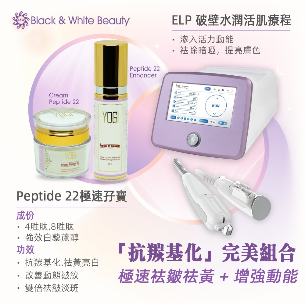 ELP 破壁水潤活肌療程為肌膚充電的同時,亦會分別以溫暖和清涼温度交替進行,令微細血管有秩序作舒張收縮運動,改善血管彈性,增加運送營養及排走癈物。當中配合的穴位刺激,減輕令肌膚負擔,倍效提高肌膚活力動能。