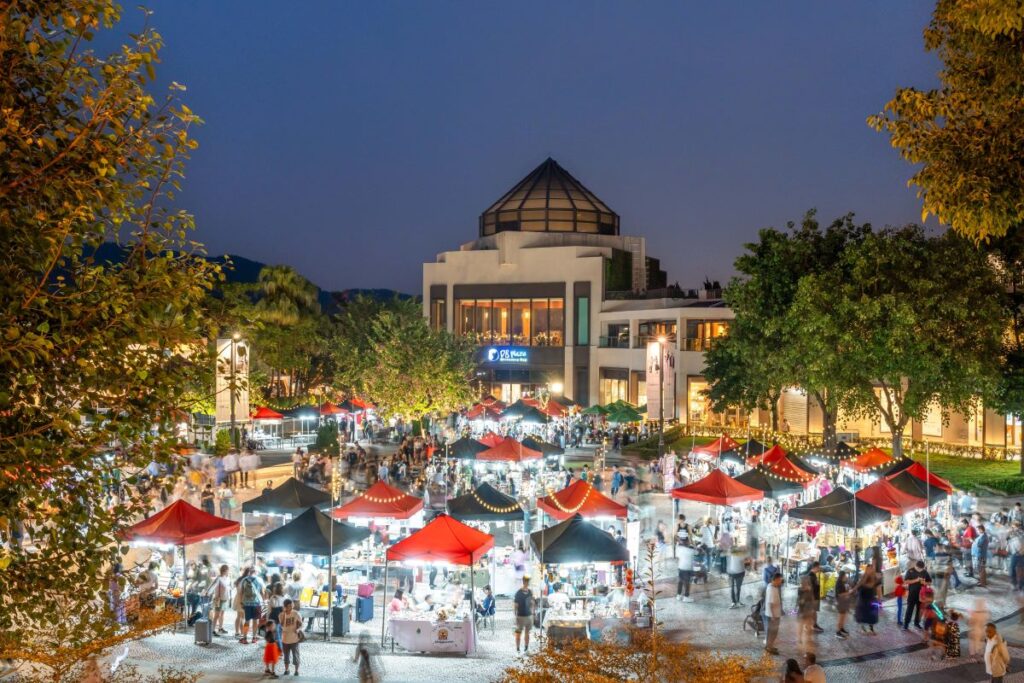 愉景灣今年萬聖節推出「盞鬼」市集,主打親子與寵物同樂。市集設有60多個特色攤位,售賣手作飾品、萬聖節主題美食及寵物用品。現場更有「哈囉Woof」毛孩造型大賽,讓主人與寵物一同扮鬼扮馬,爭奪最鬼馬造型獎。夜間燈飾與南瓜打卡牆亦成為拍照熱點,吸引一家大細齊齊玩。