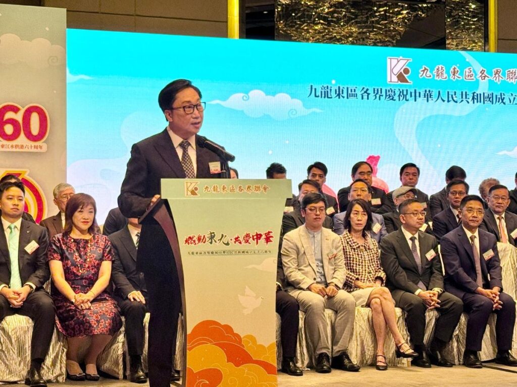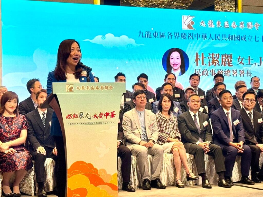 為慶祝祖國成立76周年,黃大仙民政處、觀塘民政處聯同九龍東區各界聯會(東聯)、黃大仙區青年發展及公民教育委員會(青公委)及觀塘區青公委合辦的「燃動東九‧共慶中華」國潮文化慶祝系列活動之「國潮盛典‧演藝派對」今日(8日)假香港九龍東皇冠假日酒店,舉行大型綜合表演派對,匯集系列活動中的多個表演,以綜合形式作巡演,營造熱烈氣圍。