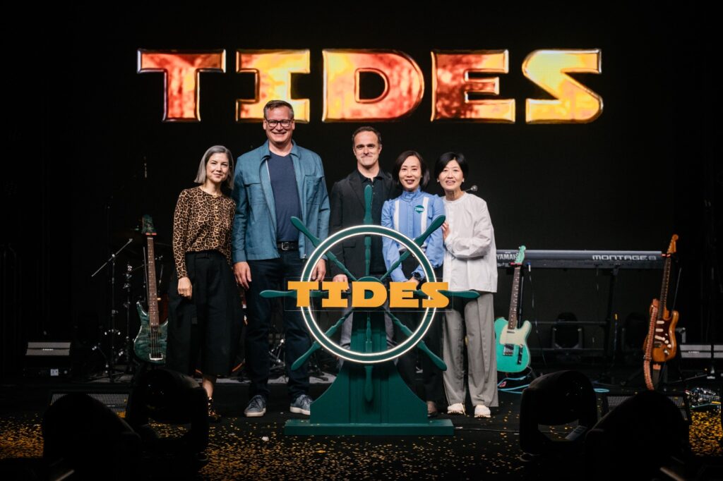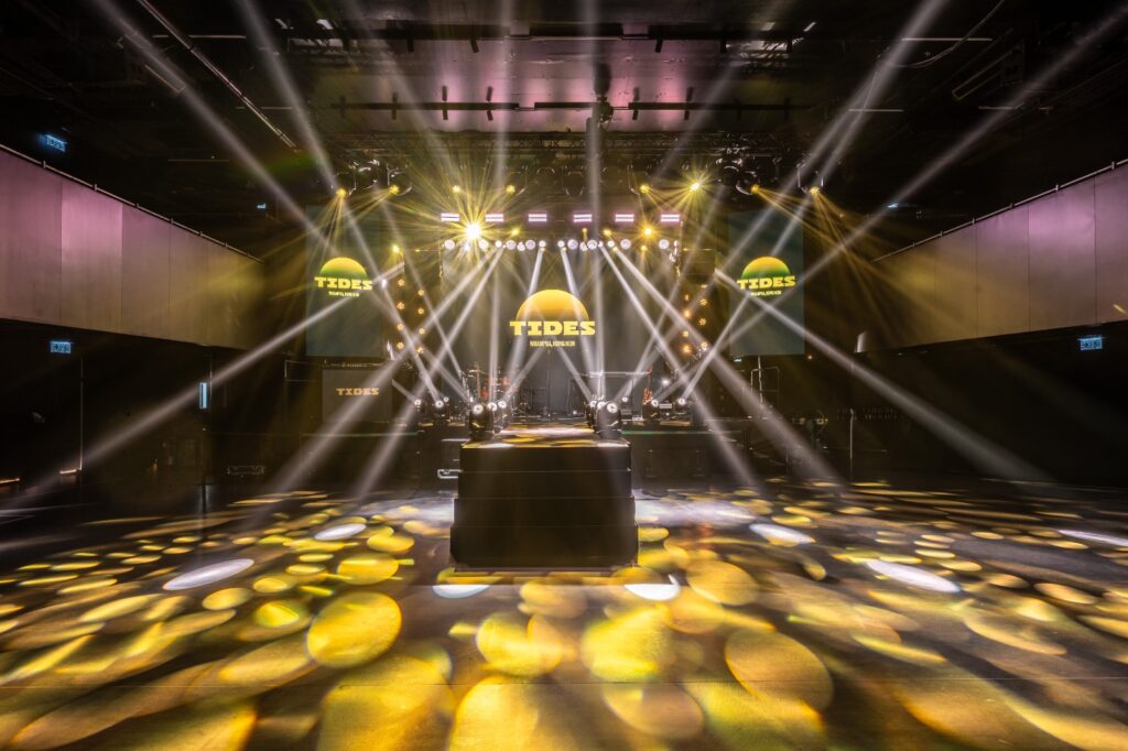 開幕典禮請來人氣樂隊The Hertz、女團Beanies、饒舌歌手Novel Fergus及Le Shing連番登場,以精彩演出點燃現場氣氛。TIDES設計靈感源自「海浪」、「航海」與「旅程」,巧妙呼應黃埔船塢歷史,由Live Nation團隊親手打造出兼具工業風與現代感的表演聖殿。