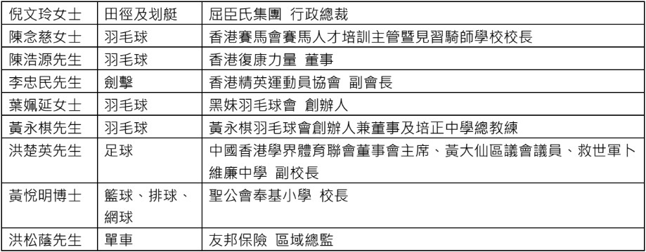 是次嘉許禮獲得政界、學界及體育界多位重量級人士支持,顧問團隊陣容鼎盛,包括中國香港足球總會會長貝鈞奇先生SBS, BBS, MH、中國香港體育協會暨奧林匹克委員會副會長劉掌珠女士, SBS, JP、香港體育學院前主席林大輝博士, GBS, JP、香港教育大學校長李子建教授, JP、香港教育大學副校長(行政) 方永豪博士、香港教育大學健康與體育學系高級講師雷雄德博士, MH。