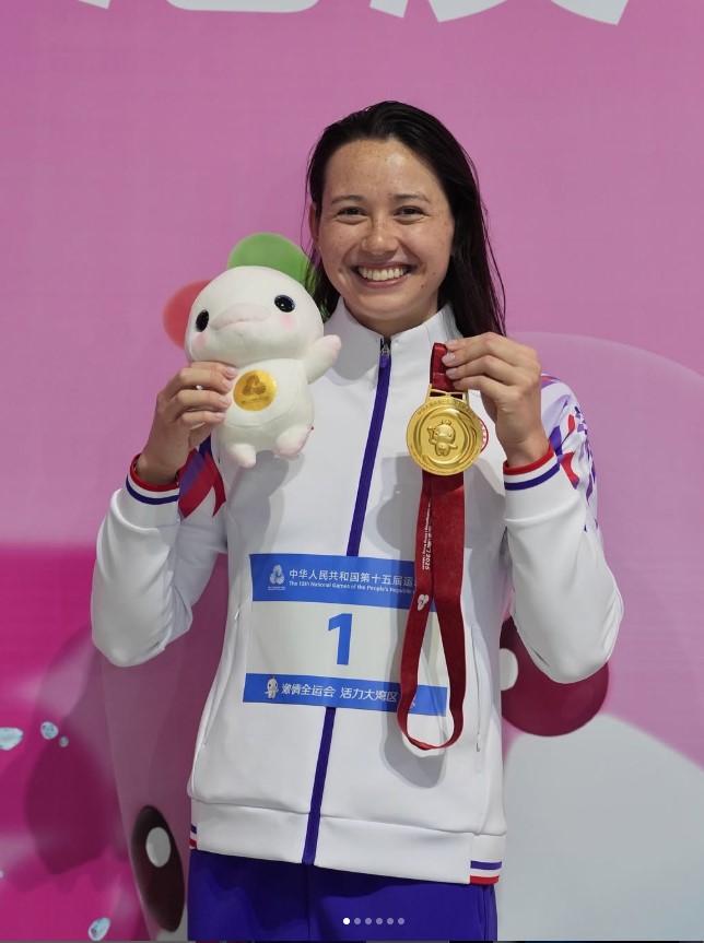第十五屆全國運動會游泳賽事昨晚(13日)在深圳大運中心游泳館掀起高潮,香港「女飛魚」何詩蓓在女子200米自由泳決賽中,以1分54秒85的佳績奪冠,為港隊今屆摘下第三金,更是她首次參加全運會首面金牌,亦是歷來首面全運會游泳金牌,意義非凡。難怪她在社交媒體留言:「It’s a pink world that we live in.」明晚她將出戰100米自由泳,衝個人第二金。