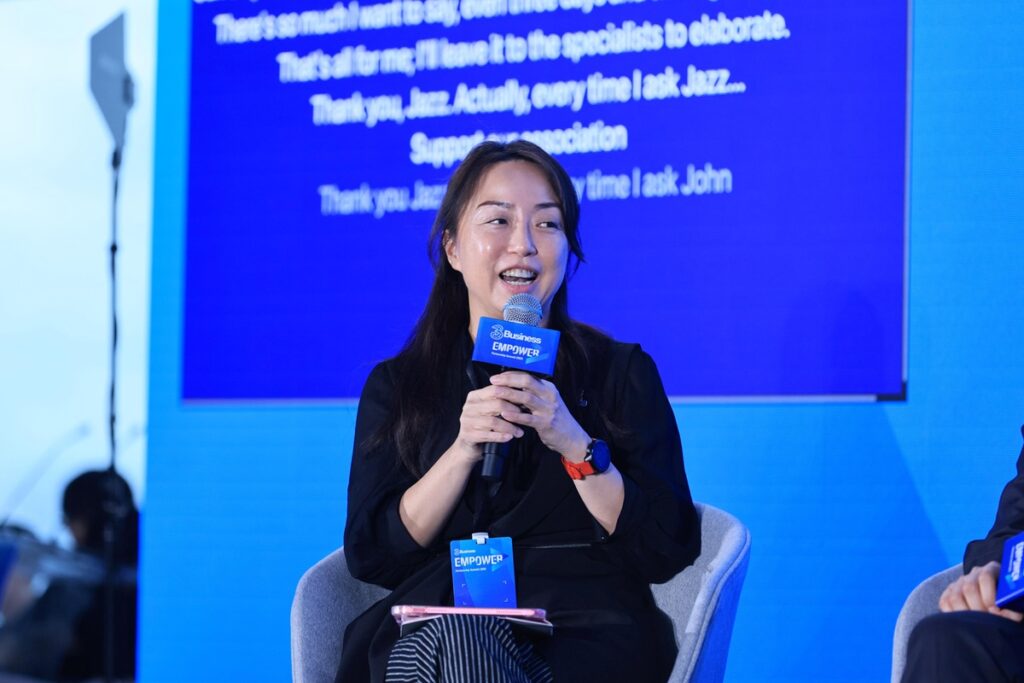 《3Business EMPOWER企業高峰會2025》第六場專題討論「人形機械人:嶄新動力,加速香港企業數碼化轉型」由香港科技創新促進組創辦人兼執行總監、香港電子環保教育協會會長梁淑寶主持,與諾達科技機械人有限公司行政總裁林智祥、Trio AI行政總裁鍾偉強博士及和記電訊(香港)企業市場高級副總裁麥紀欣三位嘉賓,從技術、應用與政策等展開多角度交流。