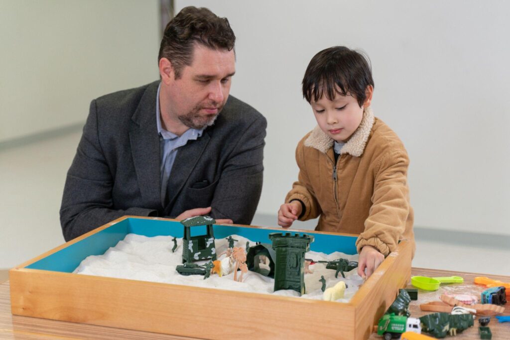 遊戲治療師會從旁觀察孩子玩玩具的表現及行為。