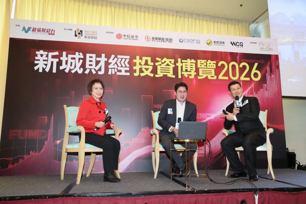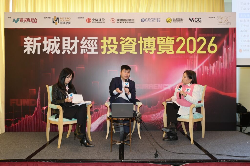 由新城財經台主辦的《新城財經投資博覽2026》,今次以「馬年投資新佈局」為主題,安排3場講座由星級財經專家胡孟青、熊麗萍、沈振盈等列陣,即場與聽眾們講解港股、美股、輪證、黃金等多元策略。