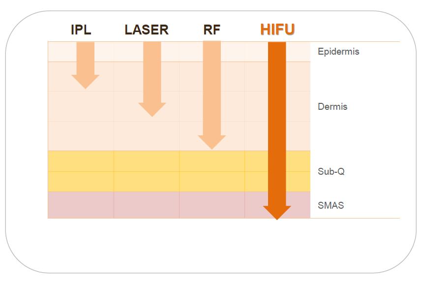 當配合HIFU療程使用時,可以大面積懸吊SMAS層向上提拉,達到收緊V面效果。隨著年齡增長,肌膚中SMAS層的膠原蛋白和彈性纖維逐漸減少,這時需要特別注意肌膚中SMAS層的緊彈及大面積提拉力。