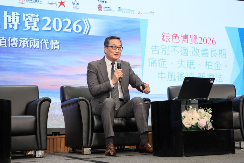 第二場講座,大會邀請到精神科醫生黎智麟與心臟科專科醫生曾子欣進行分享。黎智麟表示,銀髮族抑鬱症源於腦部血清素等傳遞物質失衡,並非性格軟弱。患者除了情緒低落、對愛好失去興趣,常伴隨不明疼痛、失眠或體重驟降,甚至因活動減少導致肌肉流失及認知能力下降。他強調抗抑鬱藥並不上癮,如SSRI或多機制新藥均能有效補充腦部化學物質,部分藥物更可改善長者的記憶力與認知功能。