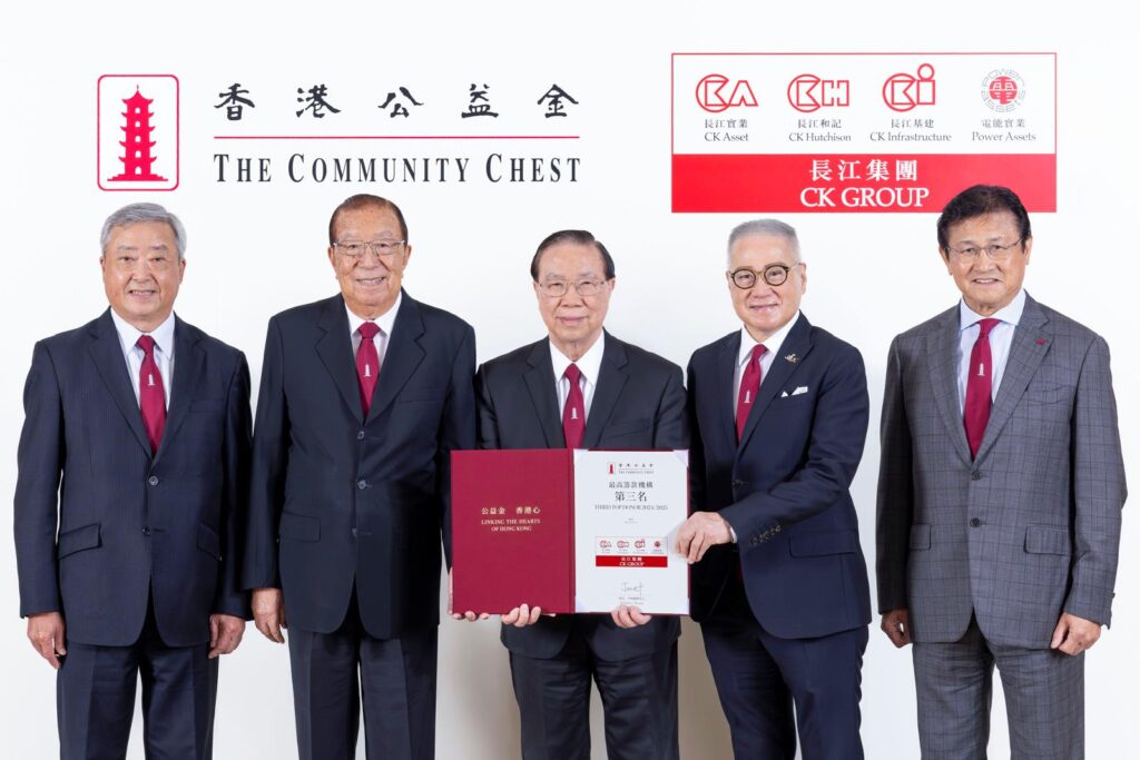於2024/2025年度內,長江集團除了聯同李嘉誠基金會「雙倍」配對捐款予「公益金及時雨基金」外,亦繼續支持其他多項公益金籌款活動,如便服日、百萬行、公益金東亞慈善高爾夫球賽,及商業及僱員募捐計劃 (包括僱員樂助計劃、綠色低碳日及公益行善「折」食日) 等。