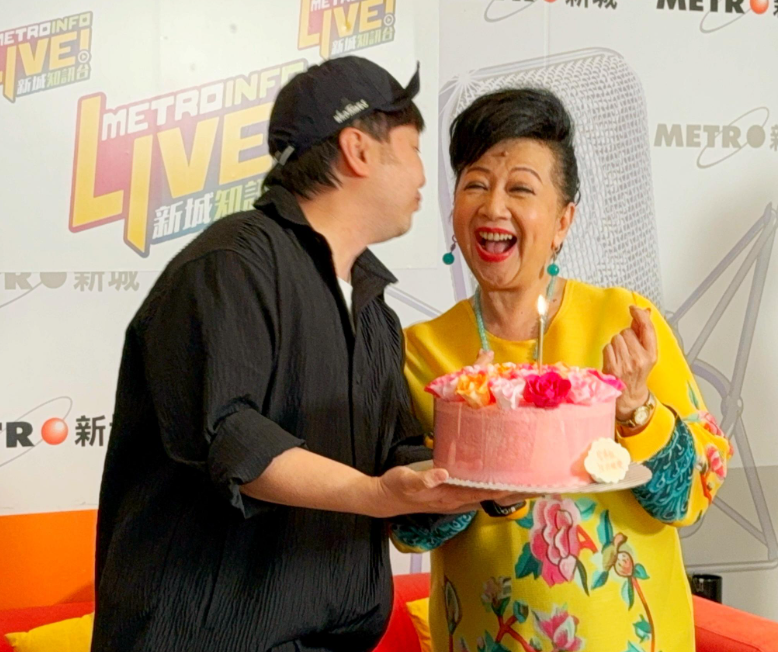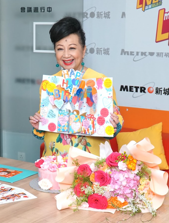 「新城之寶」、新城廣播節目主持台柱薛家燕今天(26日)回到公司為節目做準備,一眾同事為她準備了驚喜慶祝74歲的生日。家燕姐現場收到了不少同事送贈給她的生日禮物,顯得相當高興,「好多謝Steven(馬浚偉)佢特別安排,知道我今日返嚟做訪問,安排同我搞生日會。最難得同事設計嘅嘢,佢哋每個同事都寫咗啲嘢整咗一張卡畀我。另外仲整咗4張人像啤牌卡畀我,每張卡都有個J字同埋印咗我3個仔女,包括大女石祐珊(Justina)、石耀庭(Jackson)同細女石耀珠(Jamie)。」
