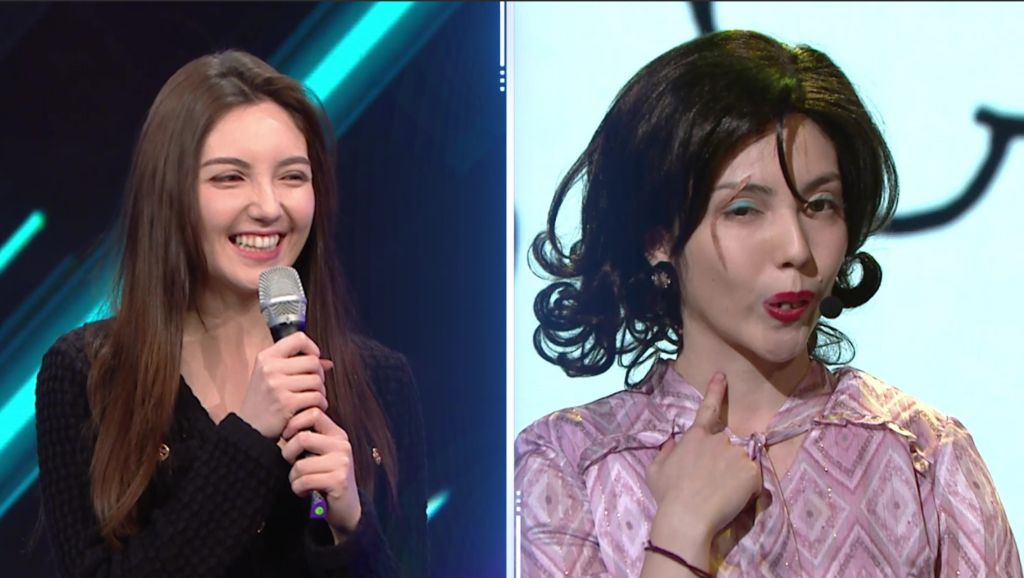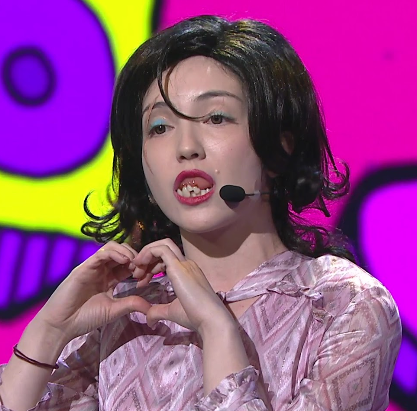 談到三位顏值代表,先說代號為「選美冠軍」的2017年國際小姐澳門代表麥嘉欣(Sofia)。她選擇扮演電影《食神》的「火雞姐」,Sofia為了認真對待,額頭上的超級刀疤及假哨牙模仿得十分出色,同時為她贏得首集焦點,加上一身古早味連身裙打扮,並向三位導師連環做出單眼及派心心表情,喜感爆燈。